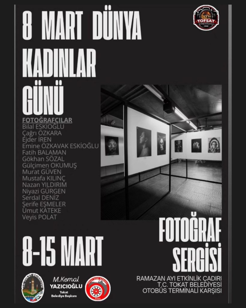 Tokat Belediyesi, Tokat Kent Konseyi ve Tokat Fotoğraf Sanatçıları Topluluğu (Tofsat) tarafından, 18 Mart Dünya Emekçi Kadınlar Günü’ne özel fotoğraf sergisi açıldı. Birbirinden güzel karelerin olduğu bu özel sergide, 15 fotoğrafçının eserlerine yer verildi. Sergide toplam, 28 eser yer aldı.